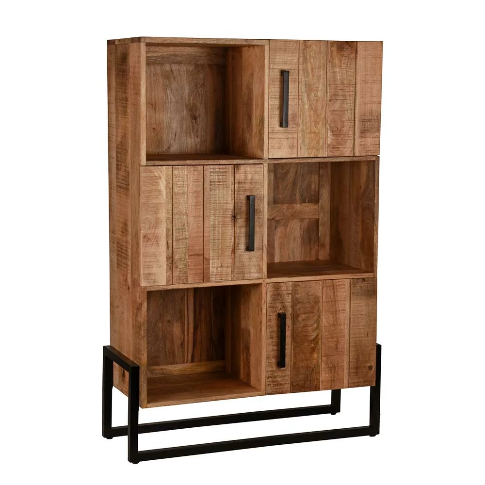 - Rustikales Regal in Mangoholz Naturfarben und Schwarz