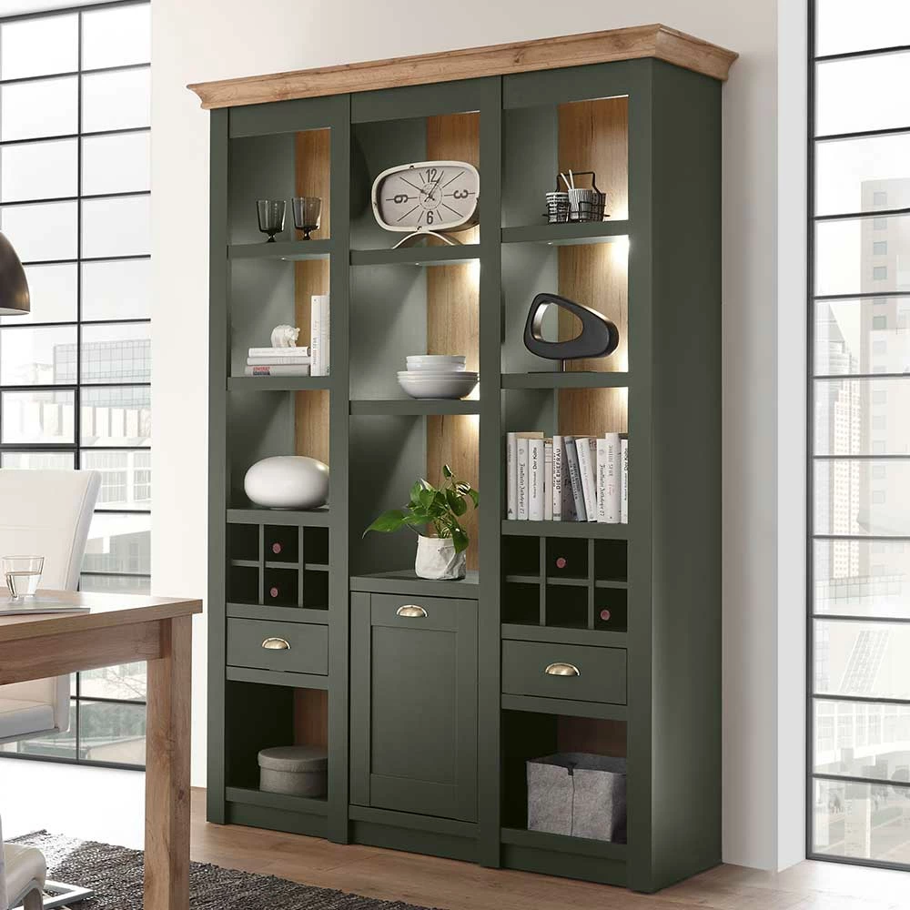 - Dekoratives Regal in Graugrün und Wildeichefarben
