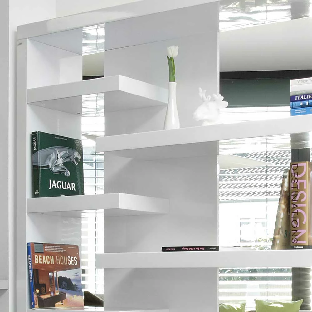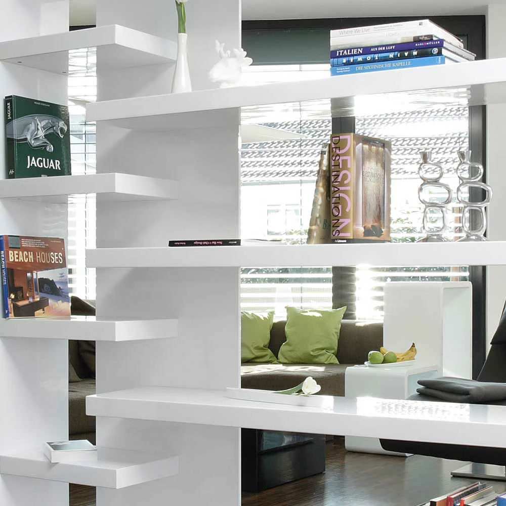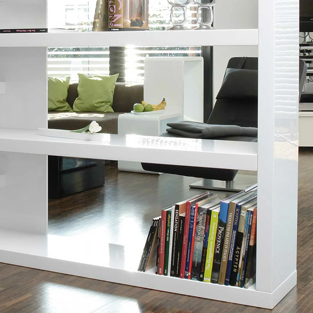 - Exklusives Raumteiler Regal in Weiß Hochglanz