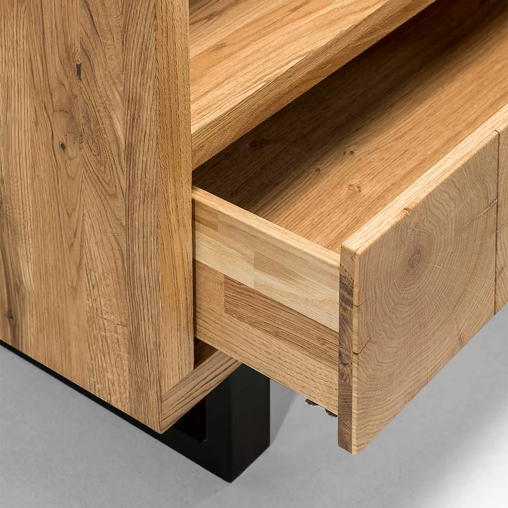 - Holzoberfläche gebürstet und geölt, individuelle Maserung und Asteinschlüsse, jedes Möbel ein Unikat