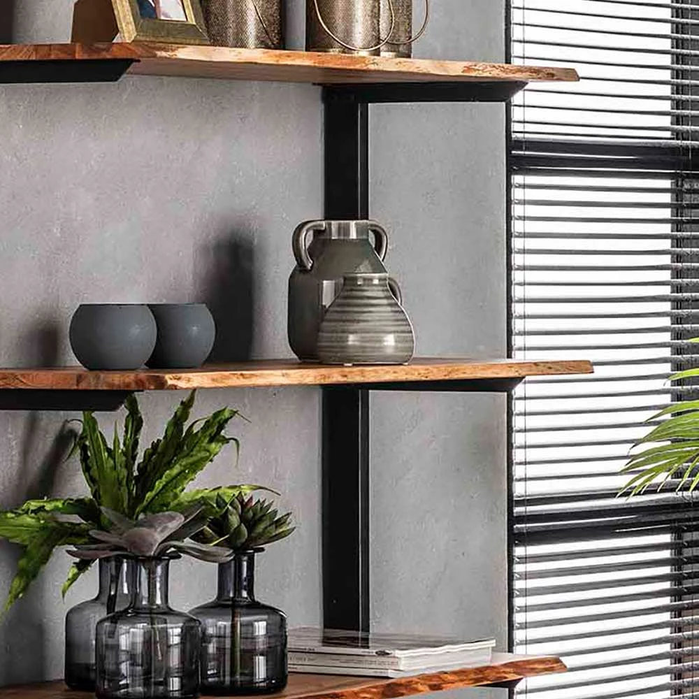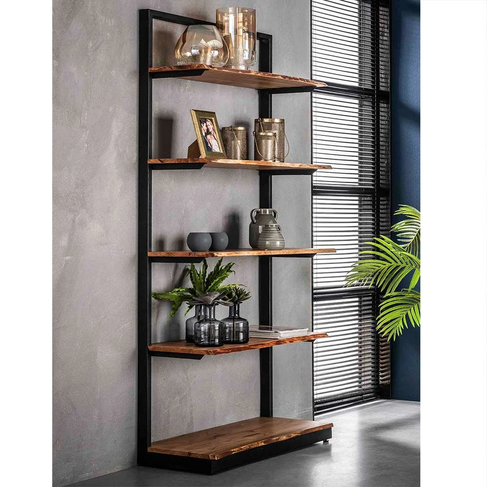 - Geniales Bücherregal in Akazie Naturfarben und Anthrazit