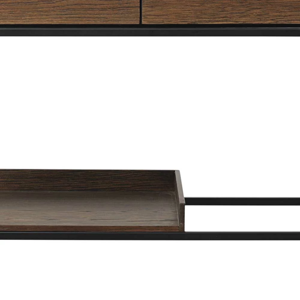 - Oberfläche mit Wildeiche echtholzfurniert, gebürstet und rauchfarbig lackiert, Metall in Schwarz lackiert