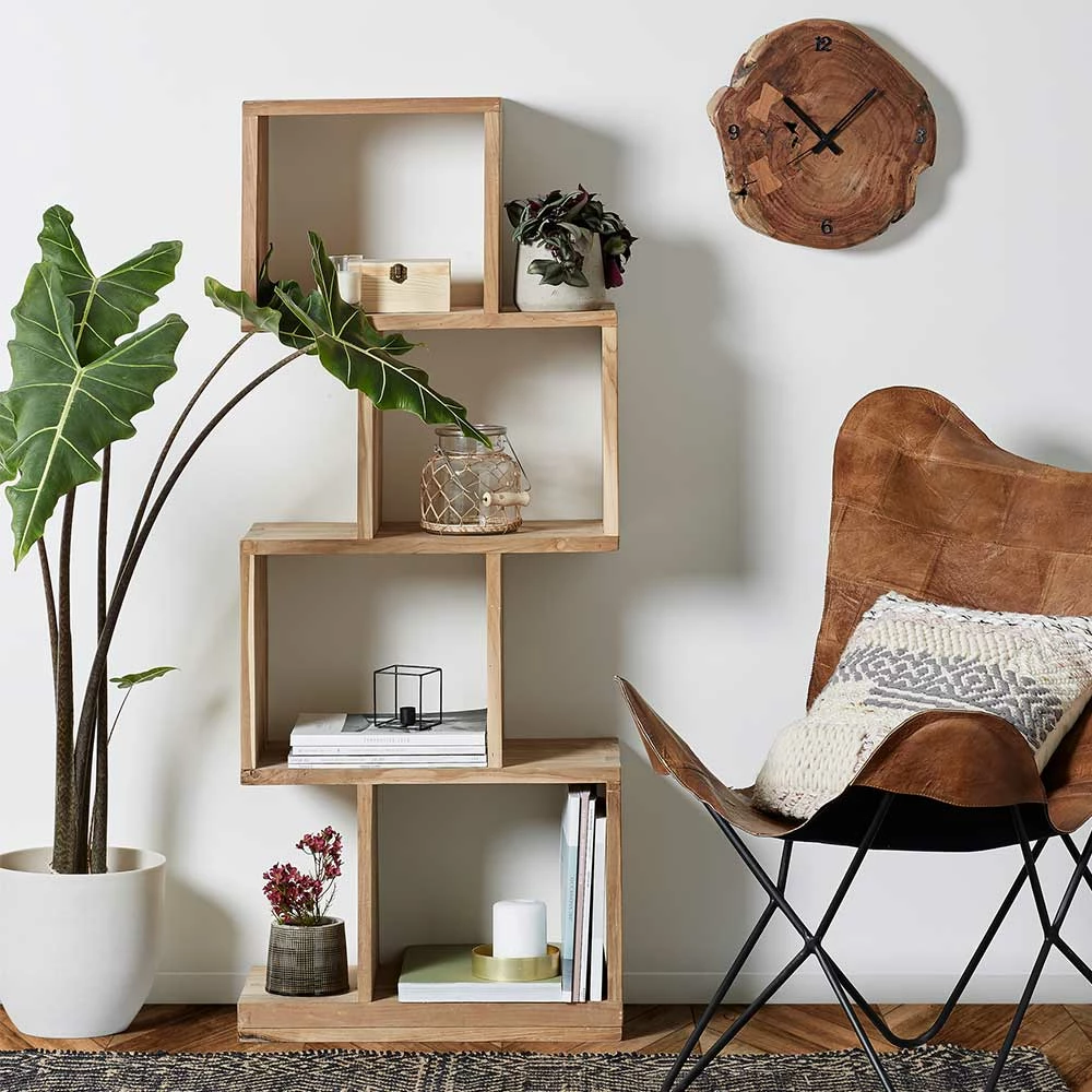 - Pfiffiges Bücherregal in Teak Naturfarben