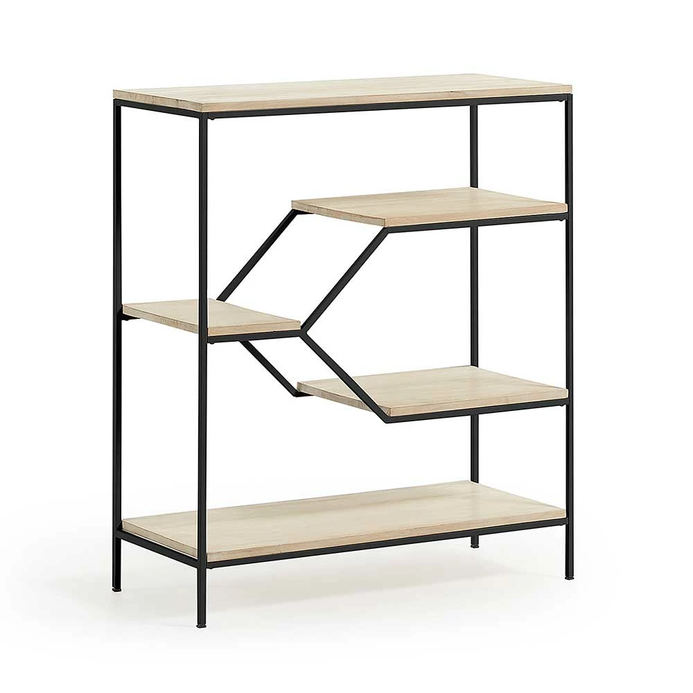 - Ungewöhnliches Bücherregal in Mangoholz Naturfarben und Schwarz
