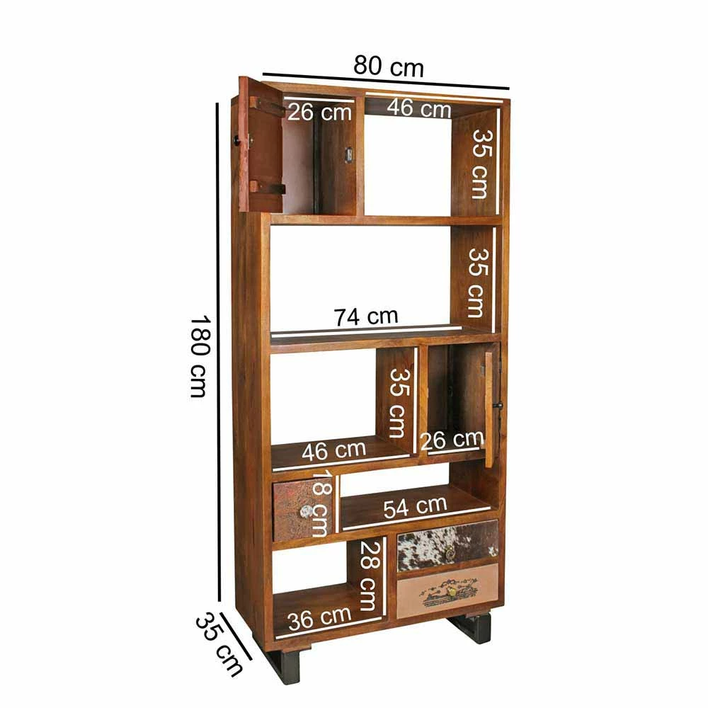 Design Vintage Standregal Southern Mit Drei Schubladen 180cm Hoch