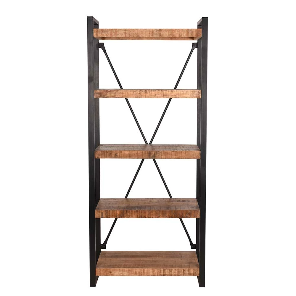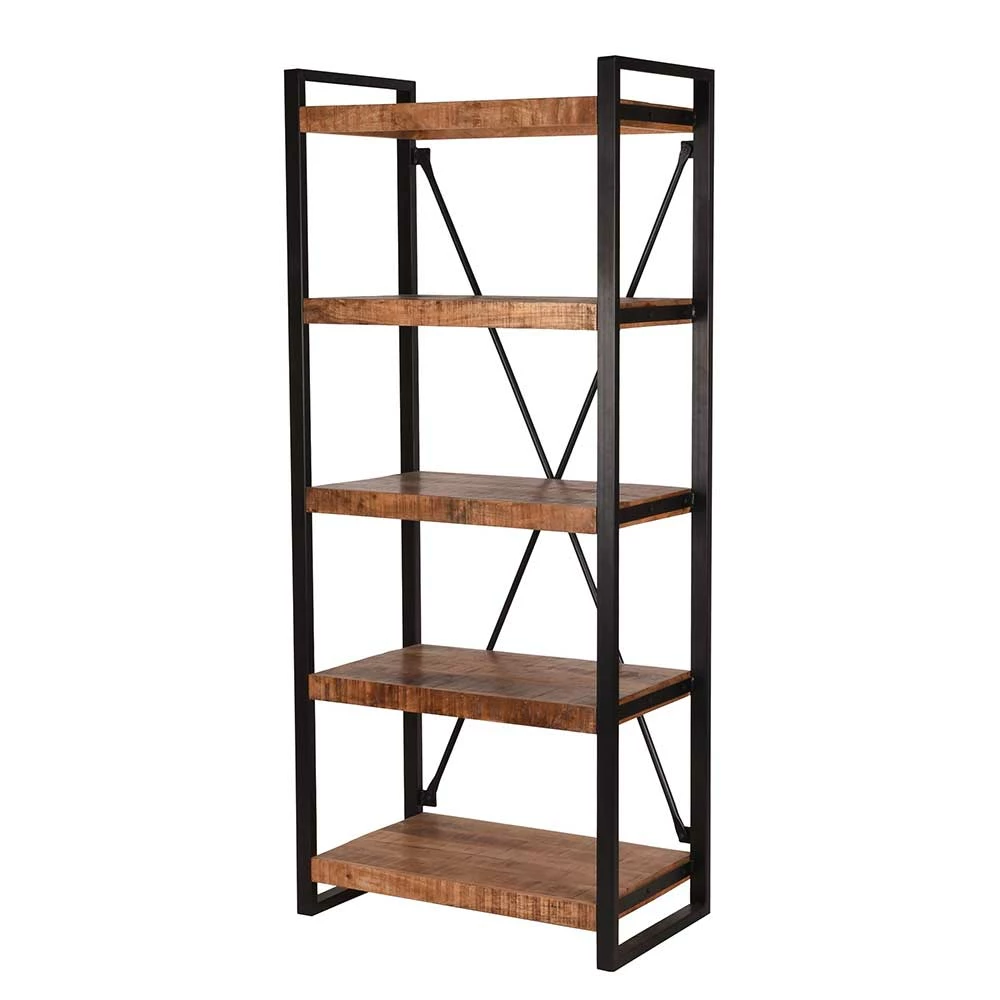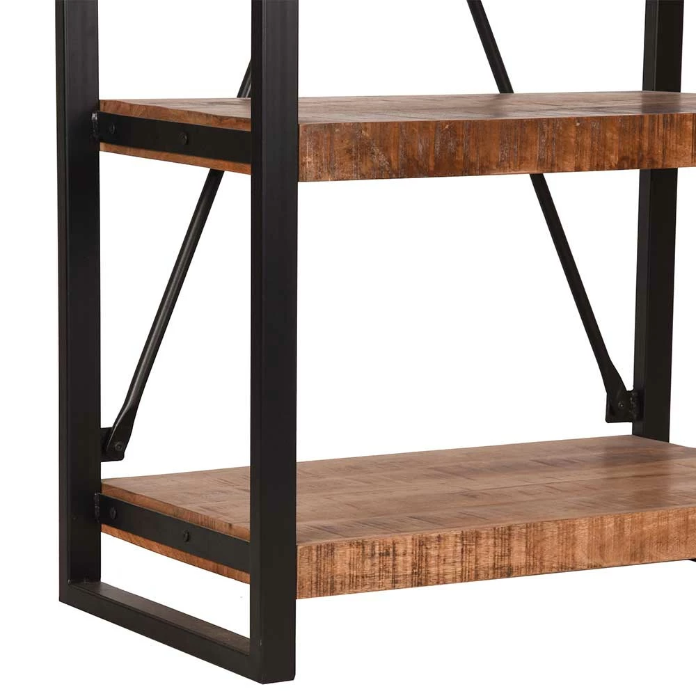 - Robustes Regal in Mangoholz Naturfarben und Schwarz
