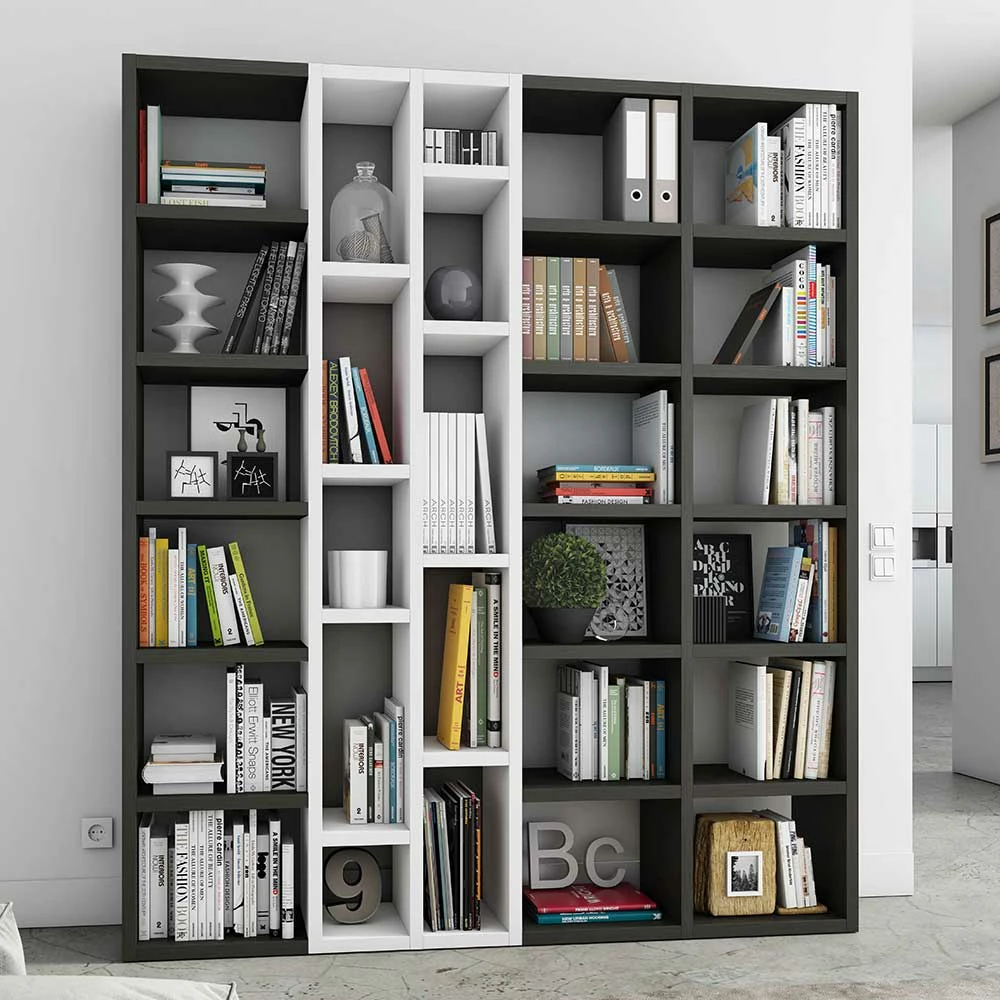 - Exzellentes Bücherregal in Eiche Schwarz Braun und Hochglanz Weiß