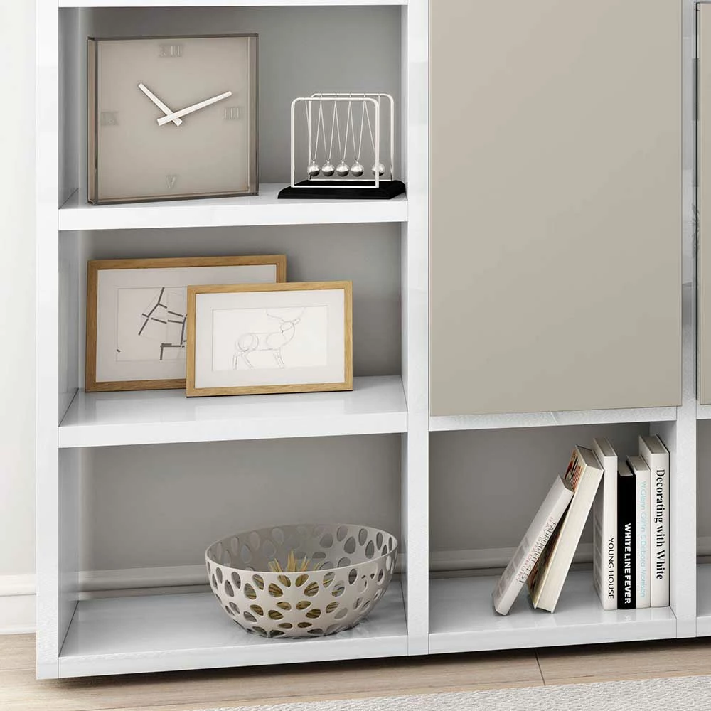 - Beeindruckende Regalwand in Hochglanz Weiß und Beige