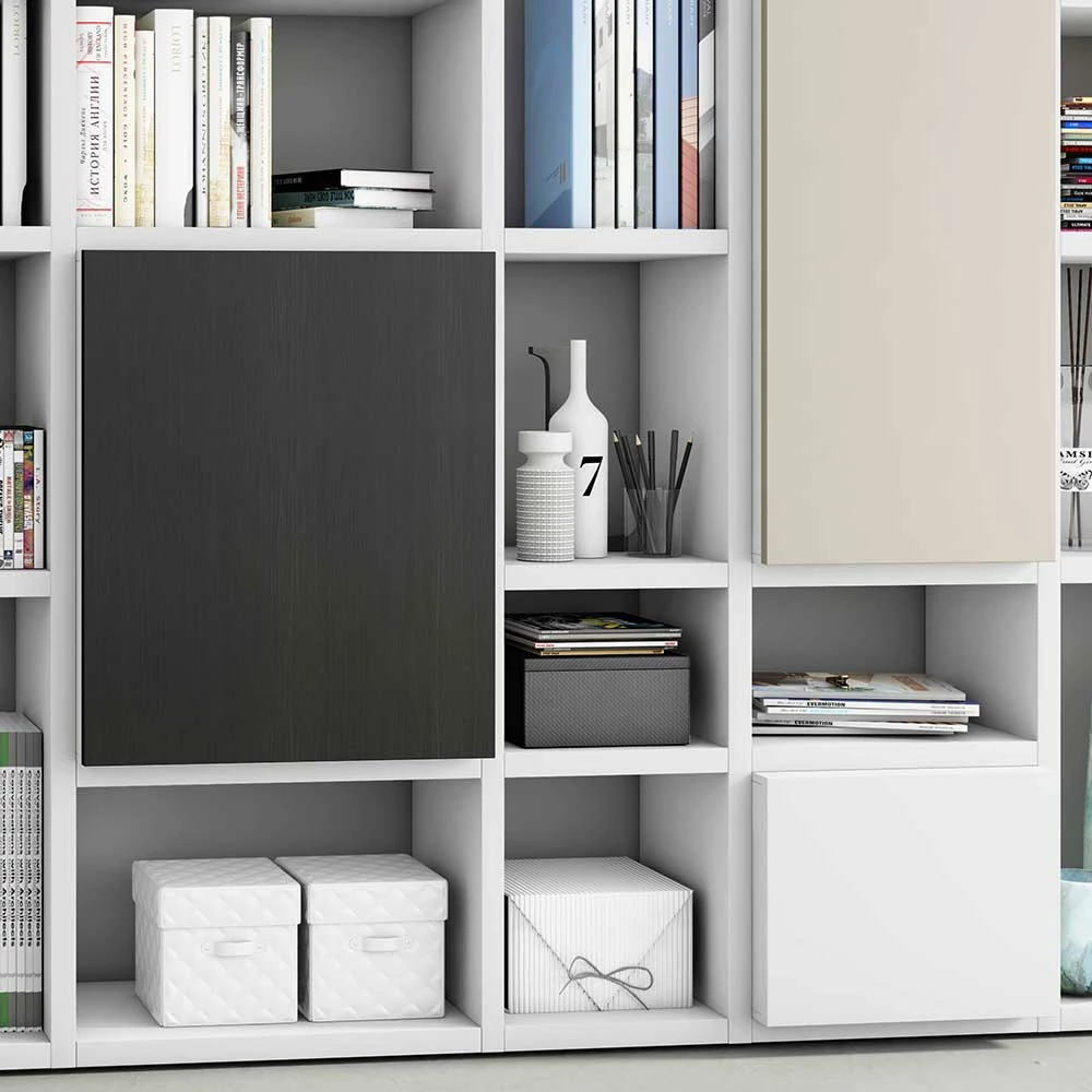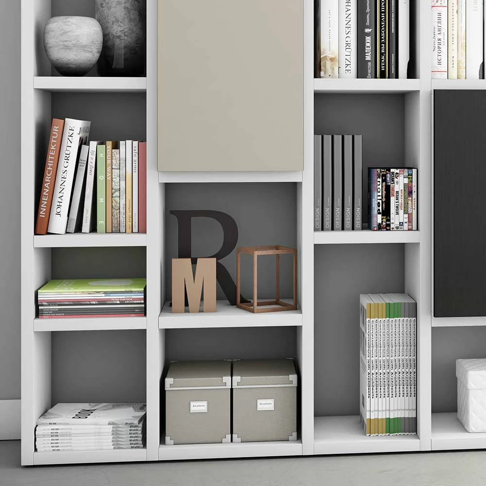 - Fantastische Regalwand in Weiß, Beige und Eiche Schwarz Braun