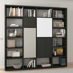 - Großartige Regalwand in Eiche Schwarz Braun, Weiß und Beige