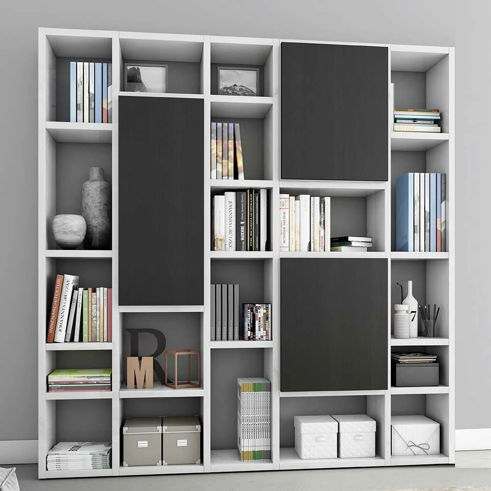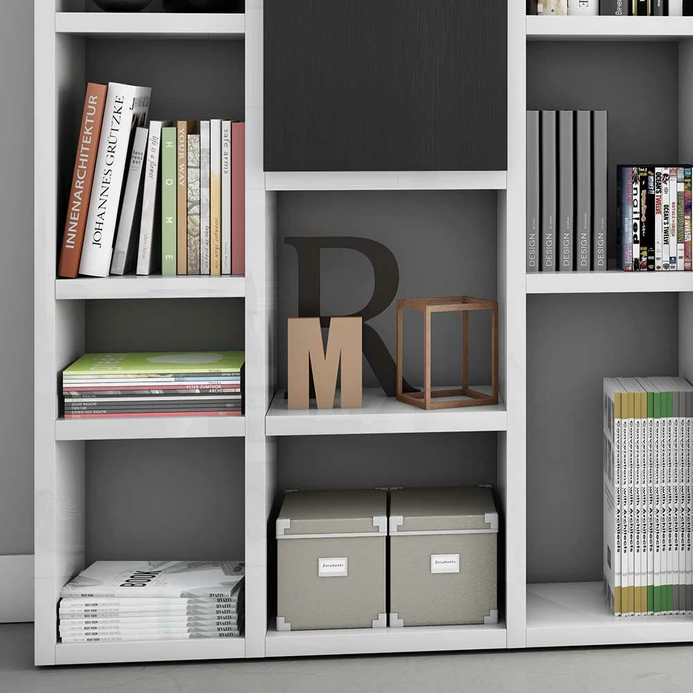 - Zauberhaft schöne Regalwand in Hochglanz Weiß und Eiche Schwarz Braun