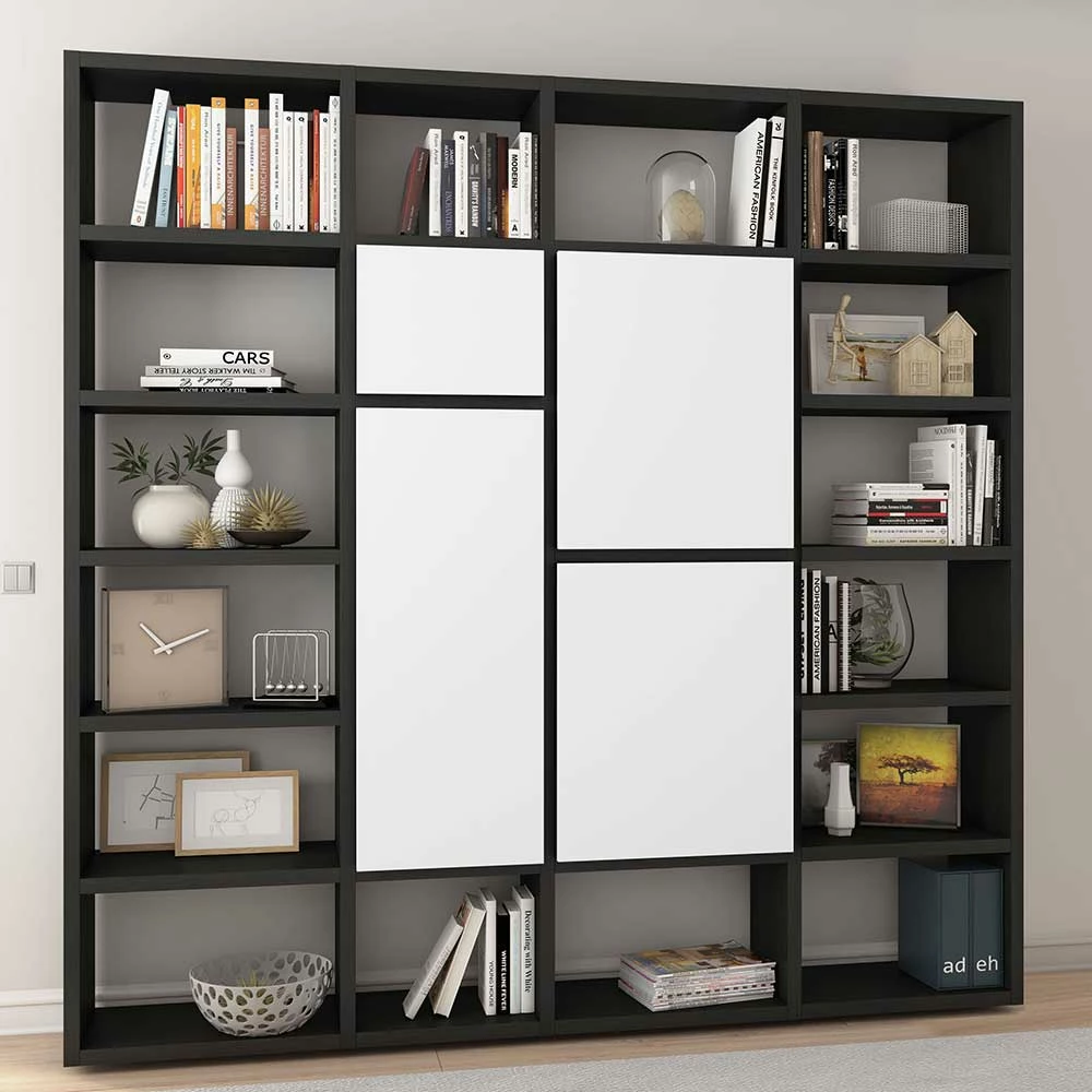 - Hervorragende Regalwand in Eiche Schwarz Braun und Weiß