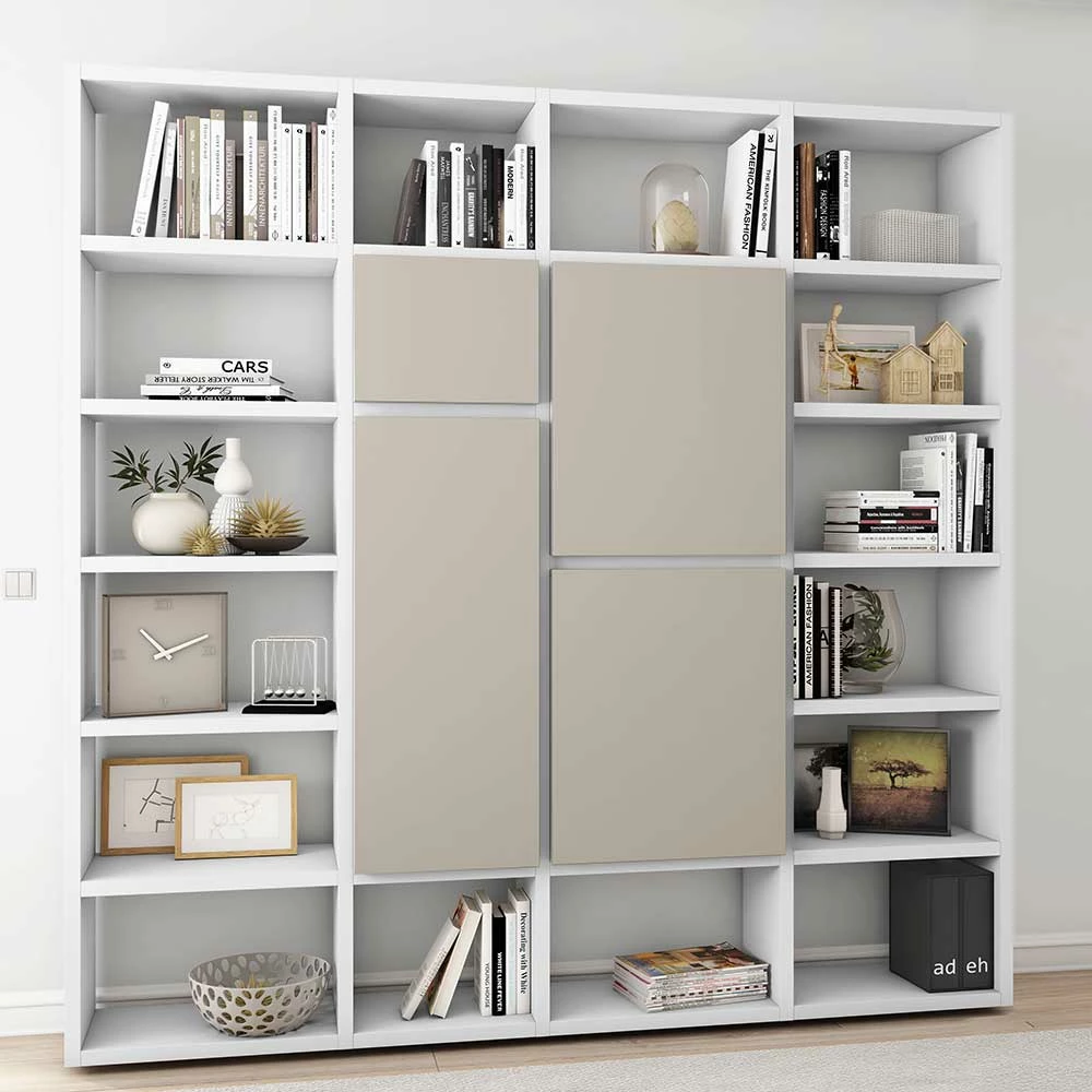 - Traumhaft schöne Regalwand in Weiß und Beige matt