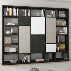 - Herausragendes Regal in Eiche Schwarz Braun, Weiß Hochglanz und Beige