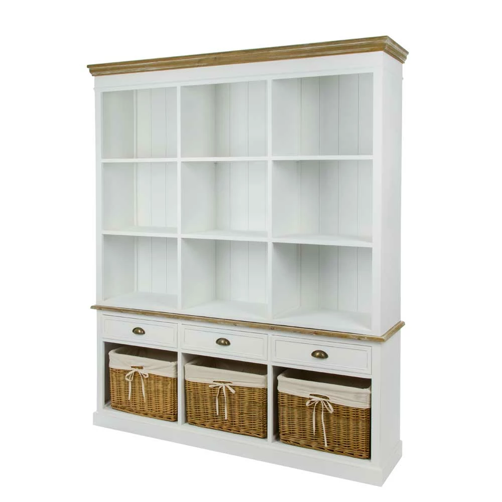 - Oben neun offene Regalfächer