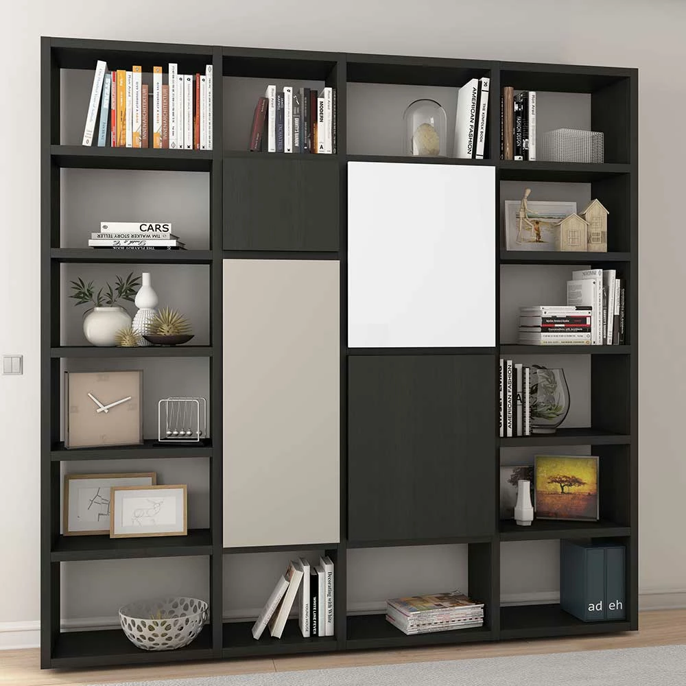 Schwarzbraunes Bücherregal Mit 4 Türen – Yanino