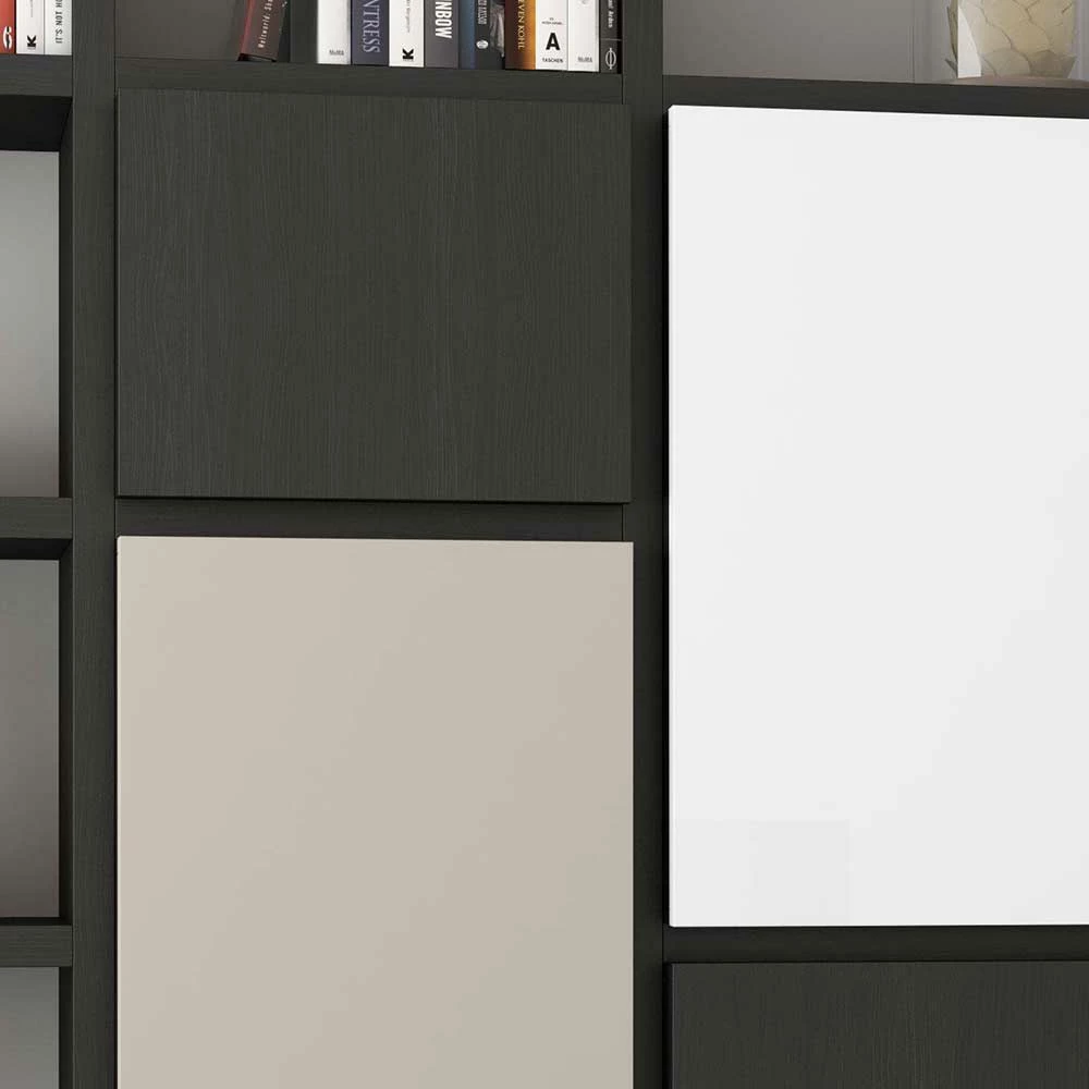 - Fabelhafte Regalwand in Eiche Schwarz Braun, Beige und Weiß Hochglanz