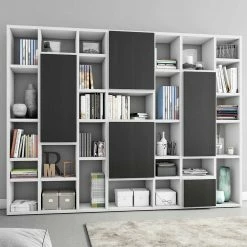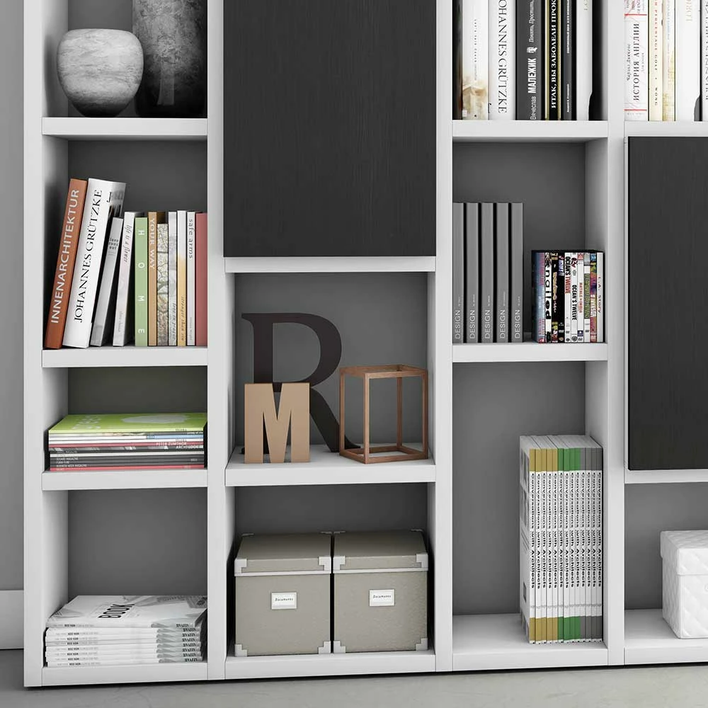 - Wunderschöne Regalwand in Weiß und Eiche Schwarz Braun