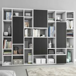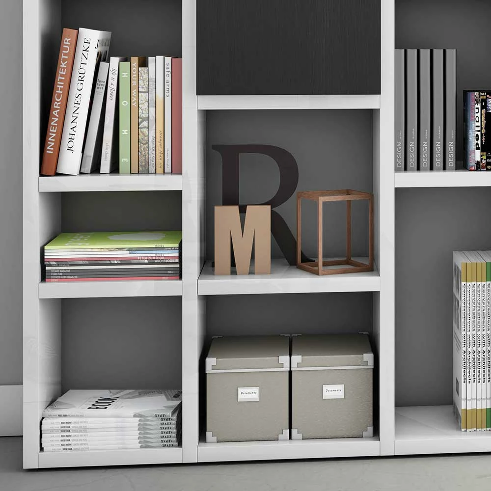 - Ausgezeichnetes Regal in Hochglanz Weiß und Eiche Schwarz Braun