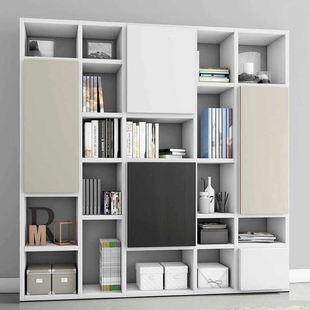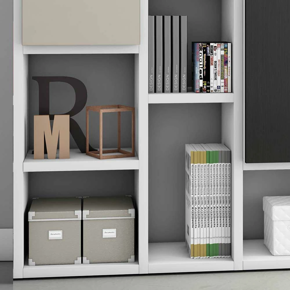 - Attraktive Regalwand in Weiß, Beige und Eiche Schwarz Braun