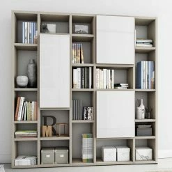 - Innovative Regalwand in Beige und Hochglanz Weiß