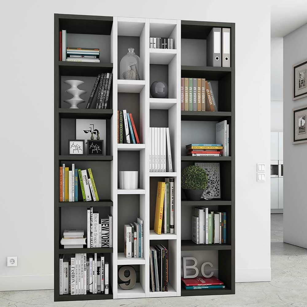 - Wunderbares Bücherregal in Eiche Schwarz Braun und Weiß Hochglanz